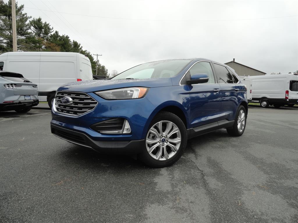 This 2022 Ford Edge Titanium Crossover all wheel drive is a marvel of automotive engineering. With a 2.0 liter EcoBoost® Turbo I4 250hp 280 lb-ft engine and an atlas blue (b3) exterior, this vehicle has been driven 55,399 miles and is sure to turn heads. It offers fuel economy in city of 20 mpg and fuel economy on highway of 28 mpg, as well as a 5 out of 5 star crash test rating. Inside, the vehicle features blind spot sensor, hill start assist, and on demand four wheel drive for added safety and control. This vehicle is sure to turn heads wherever it goes!